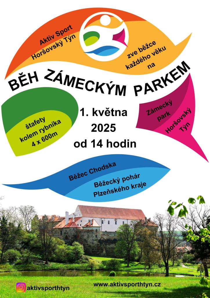 Aktiv Sport Horšovský Týn zve běžce každého věku na BĚH ZÁMECKÝM PARKEM 1. května 2025 od 14:00 hodin. Běžec Chodska - Běžecký pohár Plzeňského kraje.