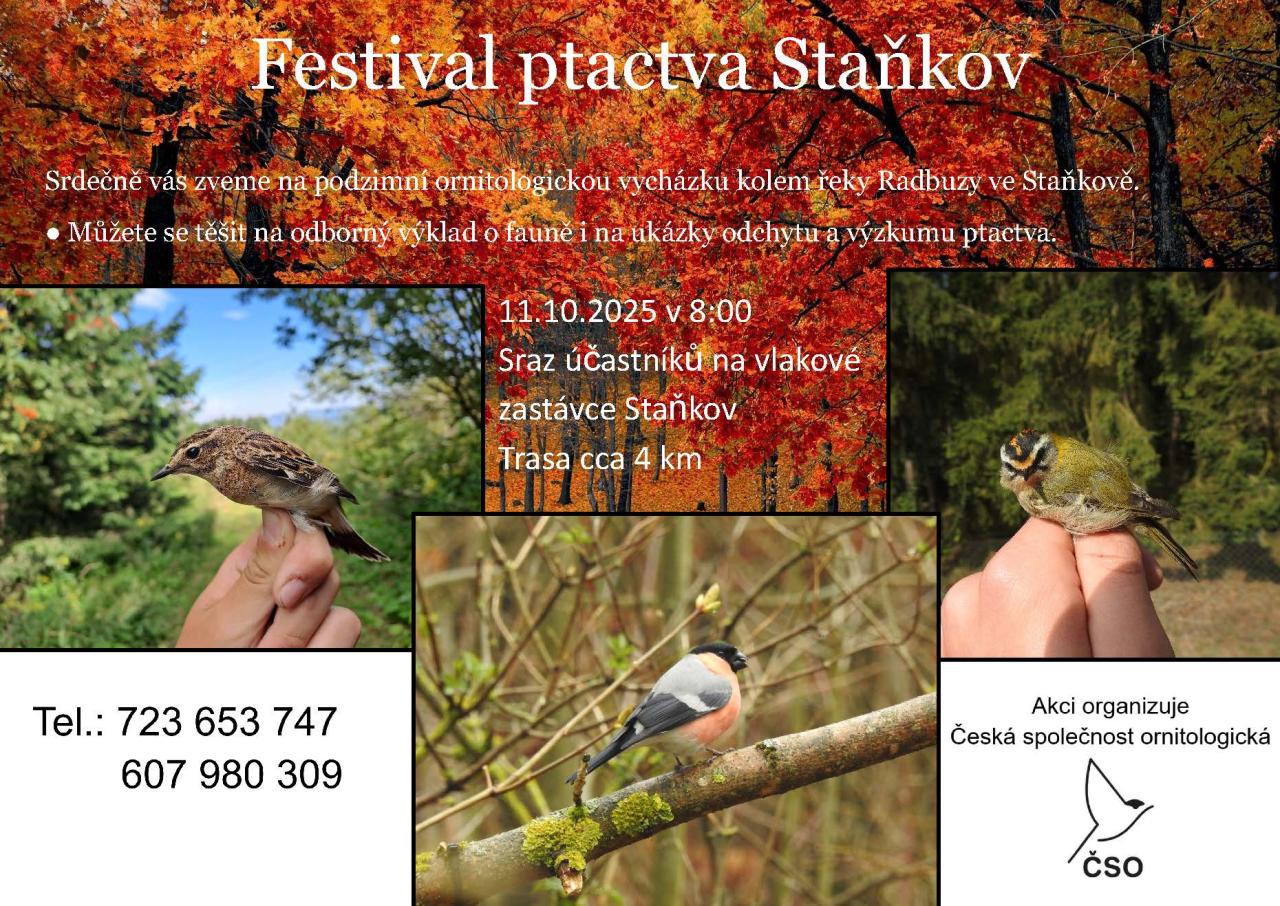 11.10.2025 v 8:00 Sraz účastníků na vlakové zastávce Staňkov Trasa cca 4 km Akci organizuje Česká společnost ornitologická