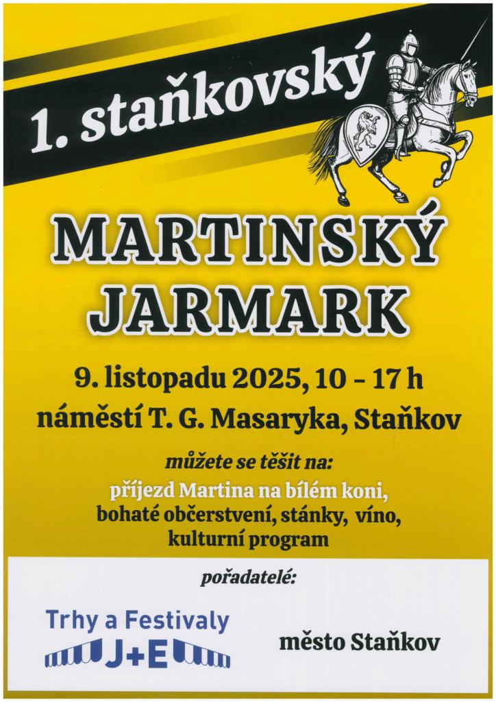 Trhy a festivaly J + E ve spolupráci s městem Staňkov všechny zvou na náměstí T.G.M. na první Martinský jarmark.