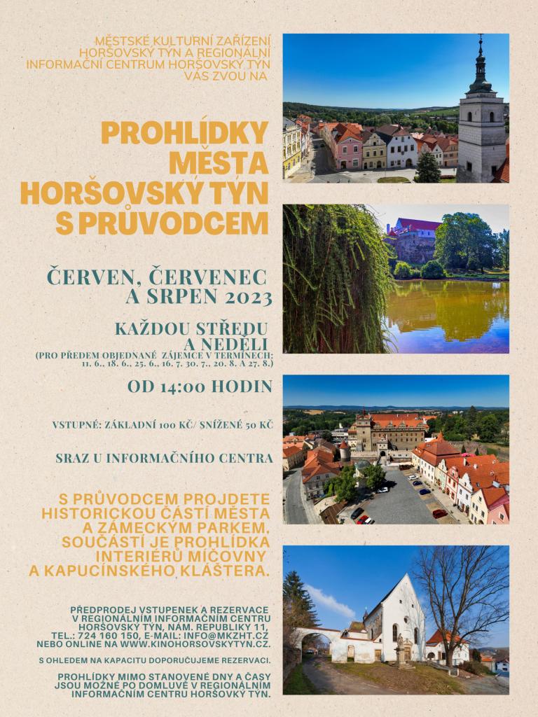 Městské kulturní centrum a Regionální informační centrum Horšovský Týn Vás zvou na PROHLÍDKY MĚSTA HORŠOVSKÝ TÝN S PRŮVODCEM v ČERVNU, ČERVENCI a SRPNU od 14:00 hodin.