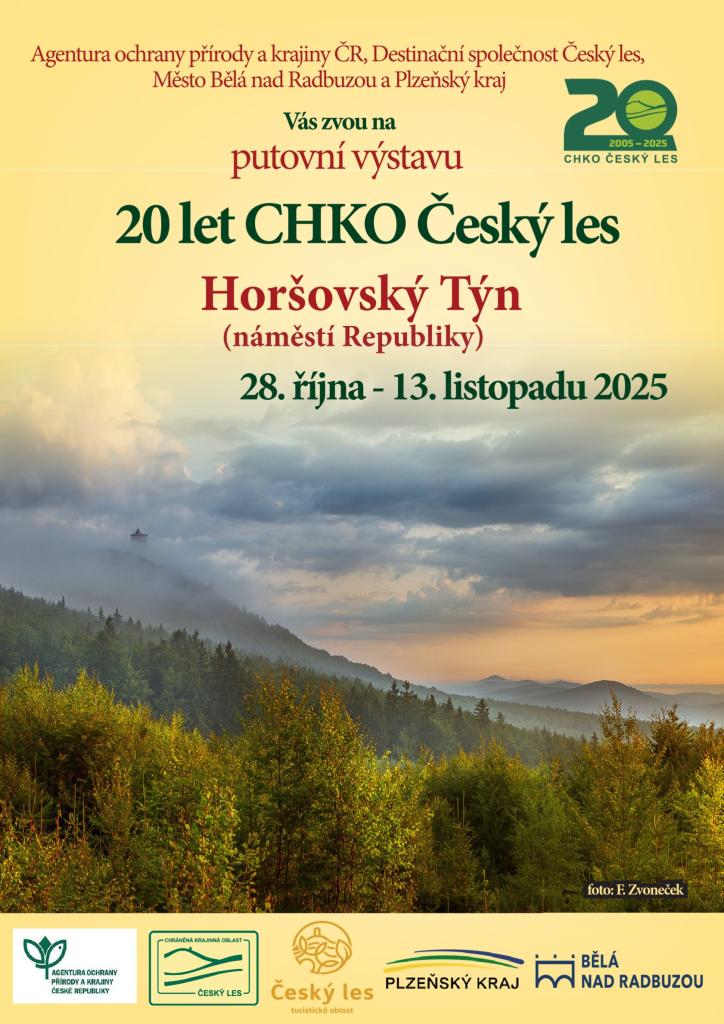 Město Bělá nad Radbuzou ve spolupráci s Plzeňským krajem a Agenturou ochrany přírody a krajiny ČR pořádá putovní výstavu věnovanou 20. výročí CHKO Český les. Výstava se uskuteční na náměstí Republiky v Horšovském Týně od 28. října do 13. listopadu 2025.
