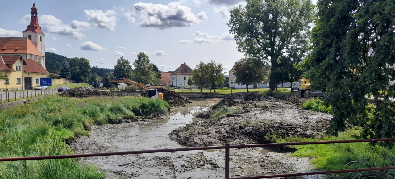 V průběhu měsíce srpna 2025 došlo k odstranění sedimentu z rybníků v Blížejově po povodních v roce 2024.