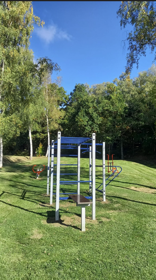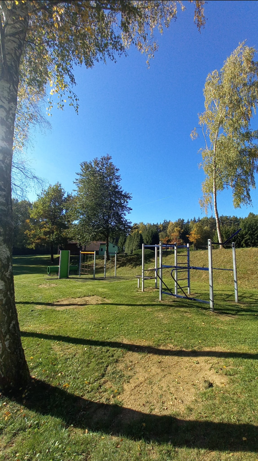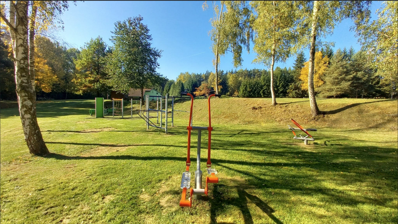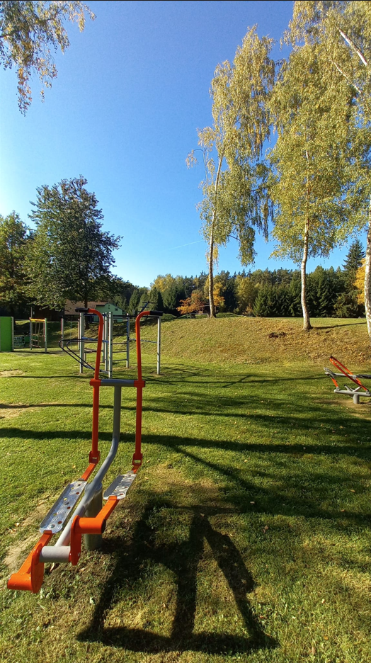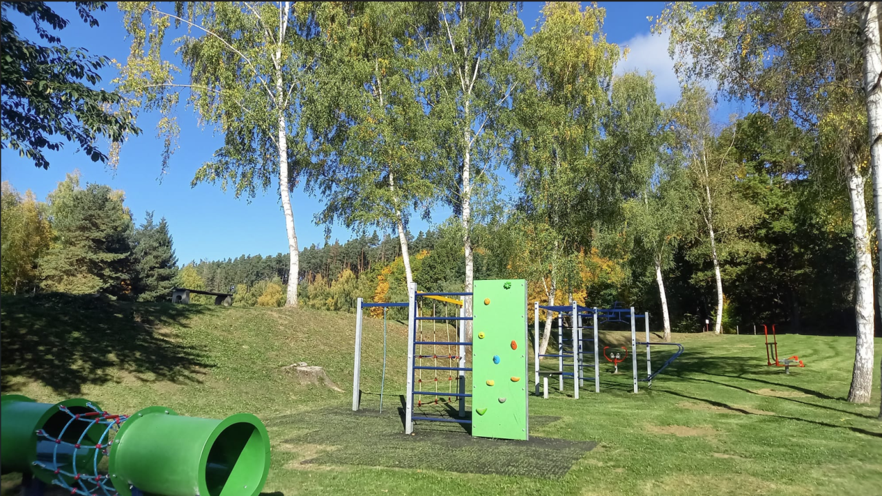 V měsíci srpnu 2025 bylo vybudováno dětské, workout a fitness hřiště na koupališti v Blížejově. Autor fotografií: Marie Dolečková
