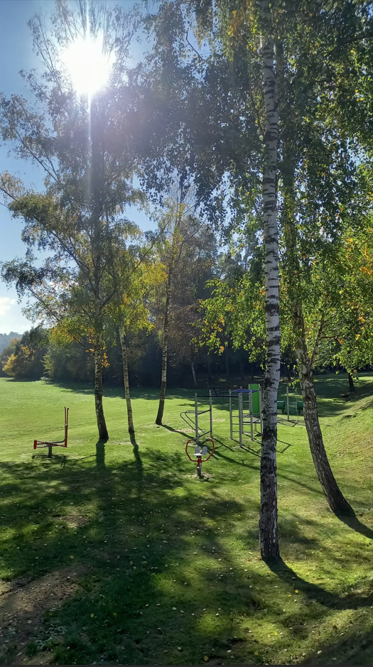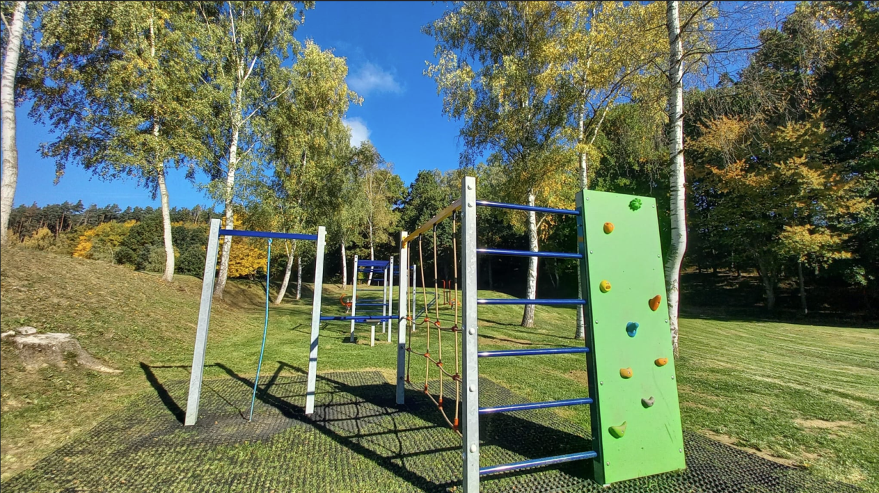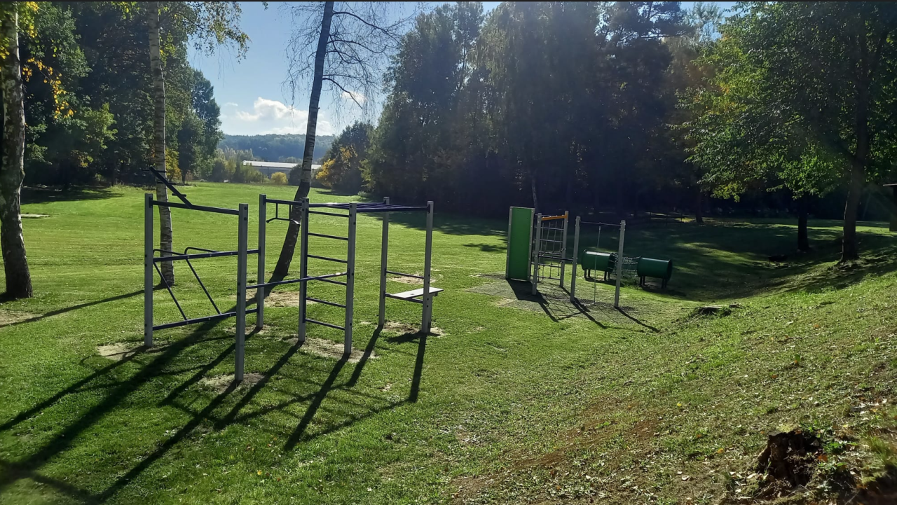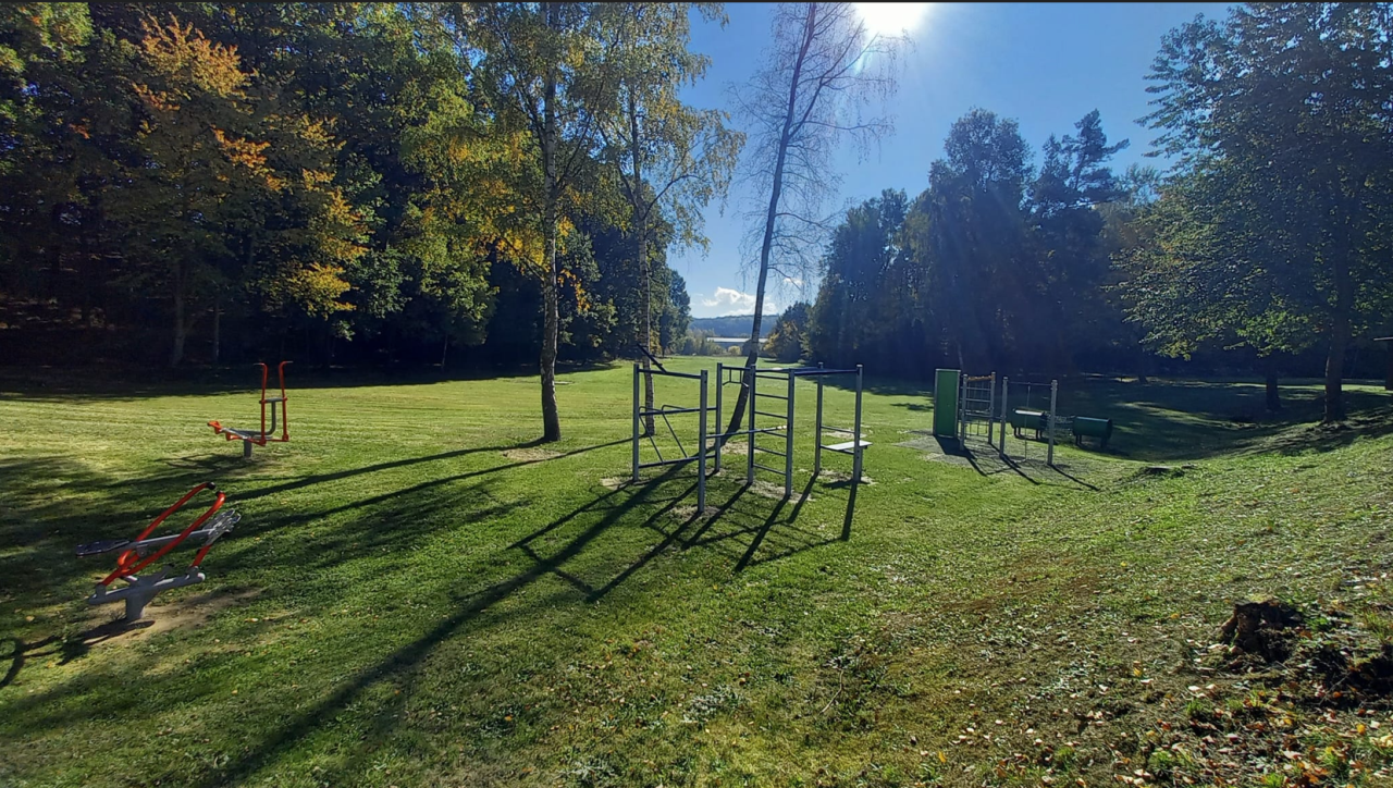 V měsíci srpnu 2025 bylo vybudováno dětské, workout a fitness hřiště na koupališti v Blížejově. Autor fotografií: Marie Dolečková